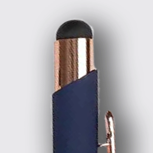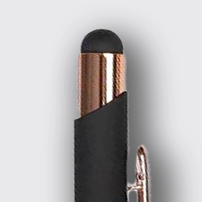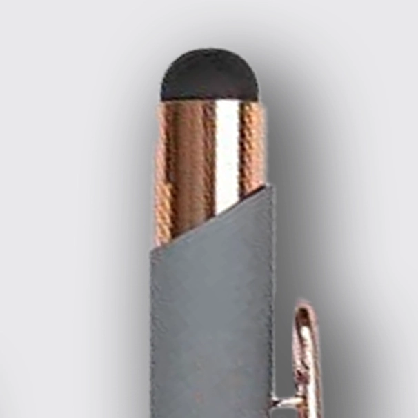 - Material aluminio con acabado caucho y clip metálico.