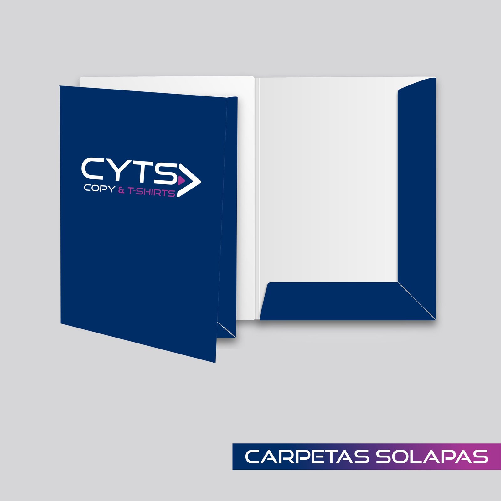 - Carpeta con solapas: Estucado semi mate de 350grs, impresas a 1 cara. Opciones de Laminado brillo y mate, Laminado mate soft touch y Laminado mate soft touch + selectivo reserva UVI 3D. Desde 100 unidades.