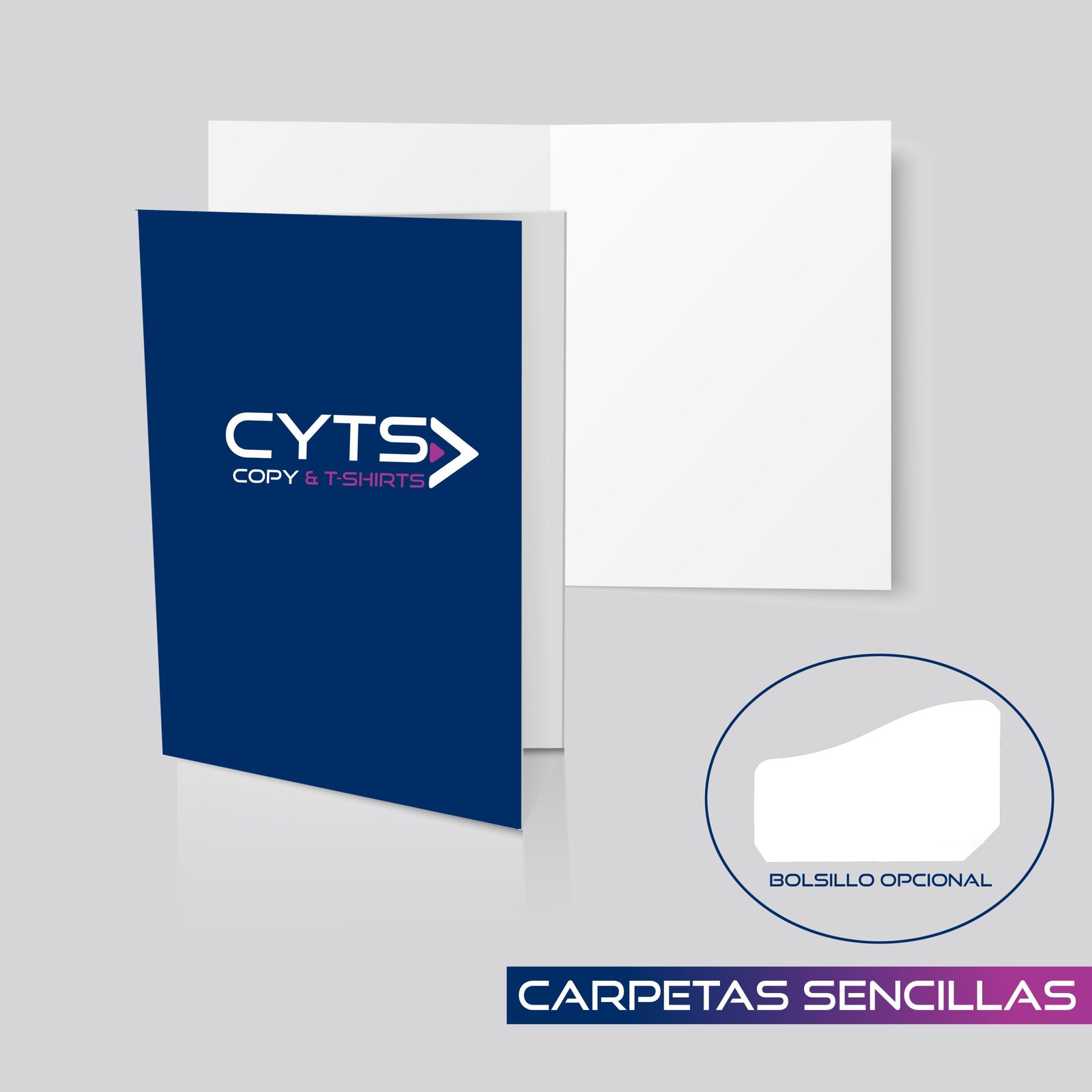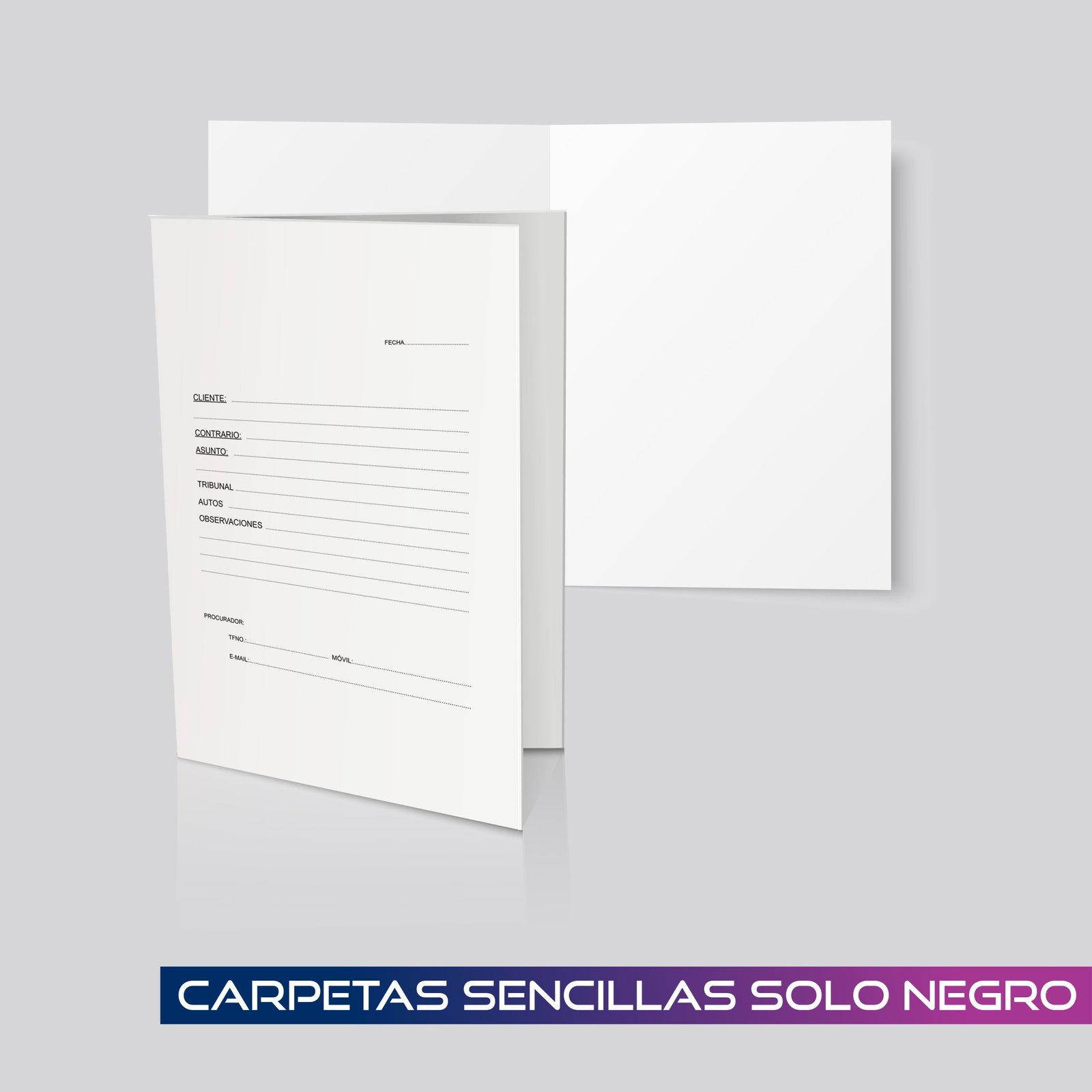 - Carpetas sencillas: Cartulina gráfica blanca de 250grs de tamaño cerrado de 24×32 cm, en color o blanco y negro. Desde 50 unidades.