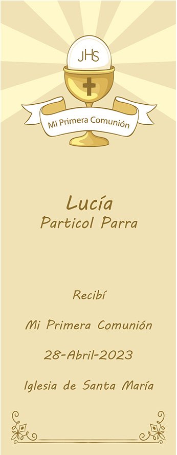 Recuerda que podemos crear el recordatorio TOTALMENTE PERSONALIZADO (Colores, ilustración, adornos…). Contáctanos.